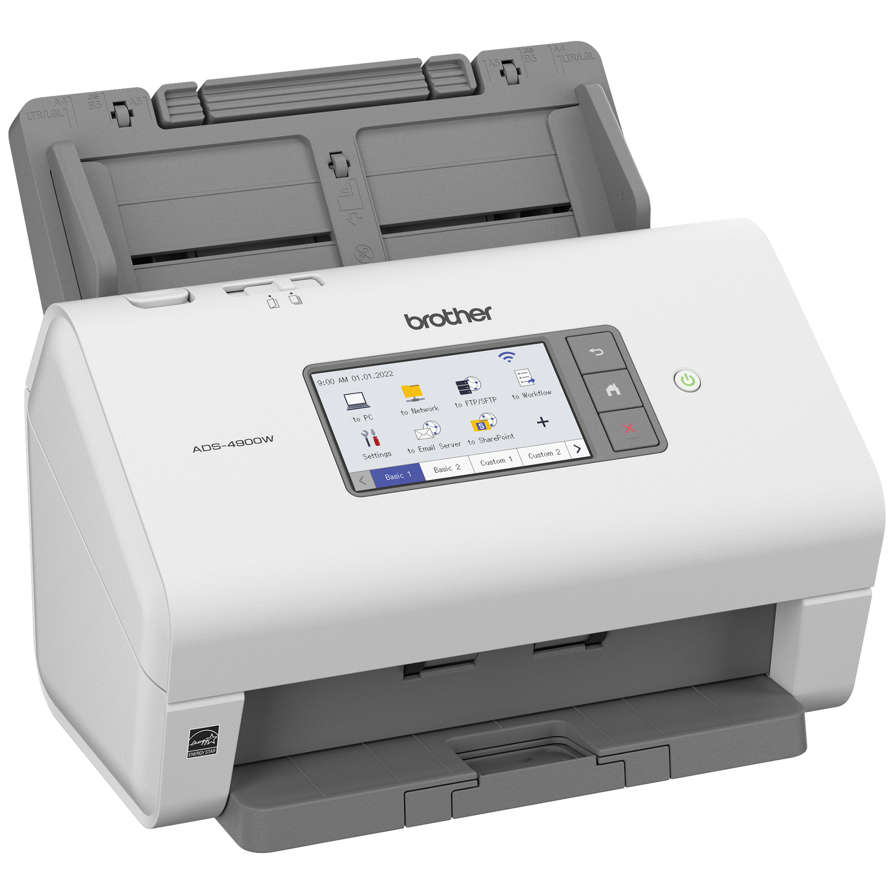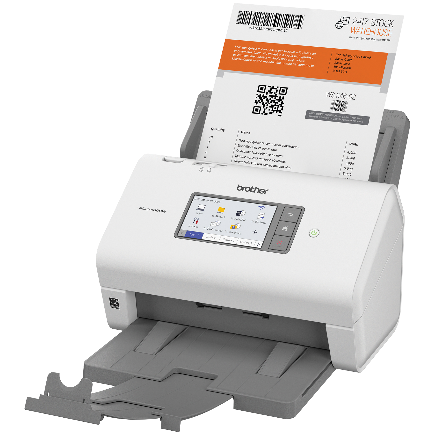 The Brother ADS-4900W Desktop Scanner delivers fast, 2-sided scanning up to 60 ppm, easily integrates with existing workflows and provides versatile scan-to destinations. Offers a 4.3" colour touchscreen display and security features to help limit document and device access. See full product description
