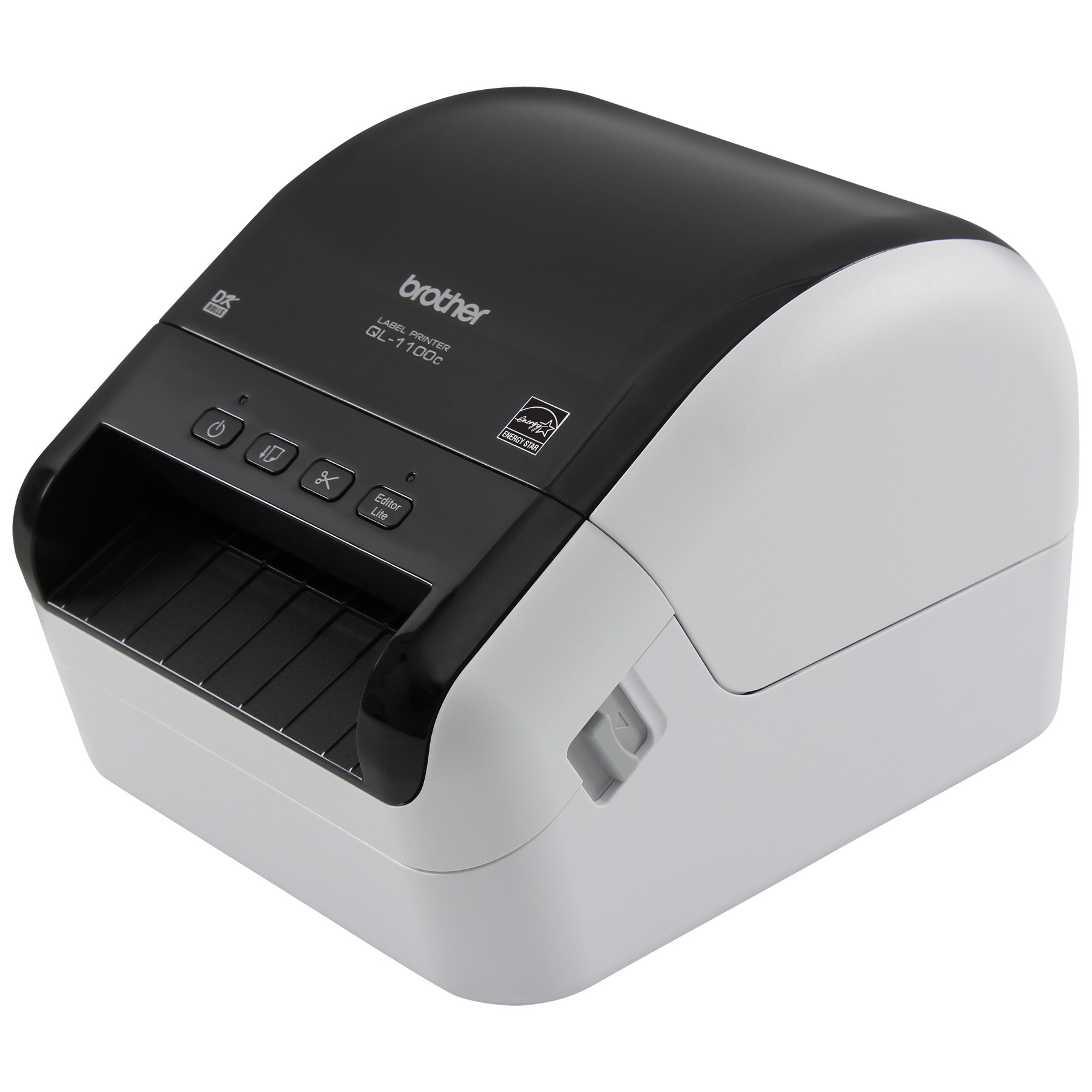 The Brother QL-1100c is a high-speed, business-quality label printer that prints cost-effective adhesive paper labels up to 4” wide for packages, envelopes and more using a USB connection to your PC or Mac. Print one or multiple labels at a time – even with barcodes. See full product description