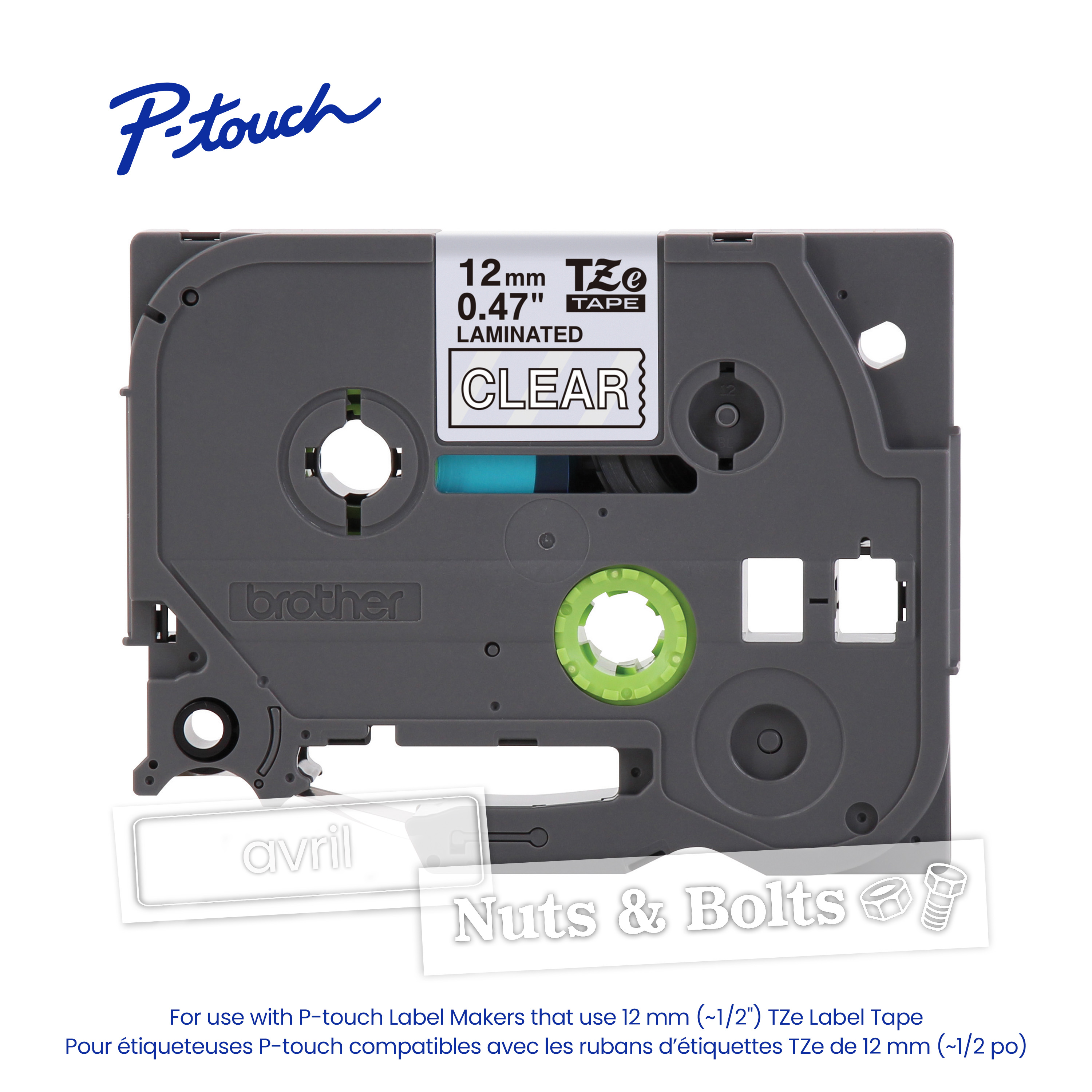 Brother TZe-135 Ruban laminé transparent avec texte blanc authentique pour étiqueteuse P-touch, 12 mm (L) x 8 m (l)