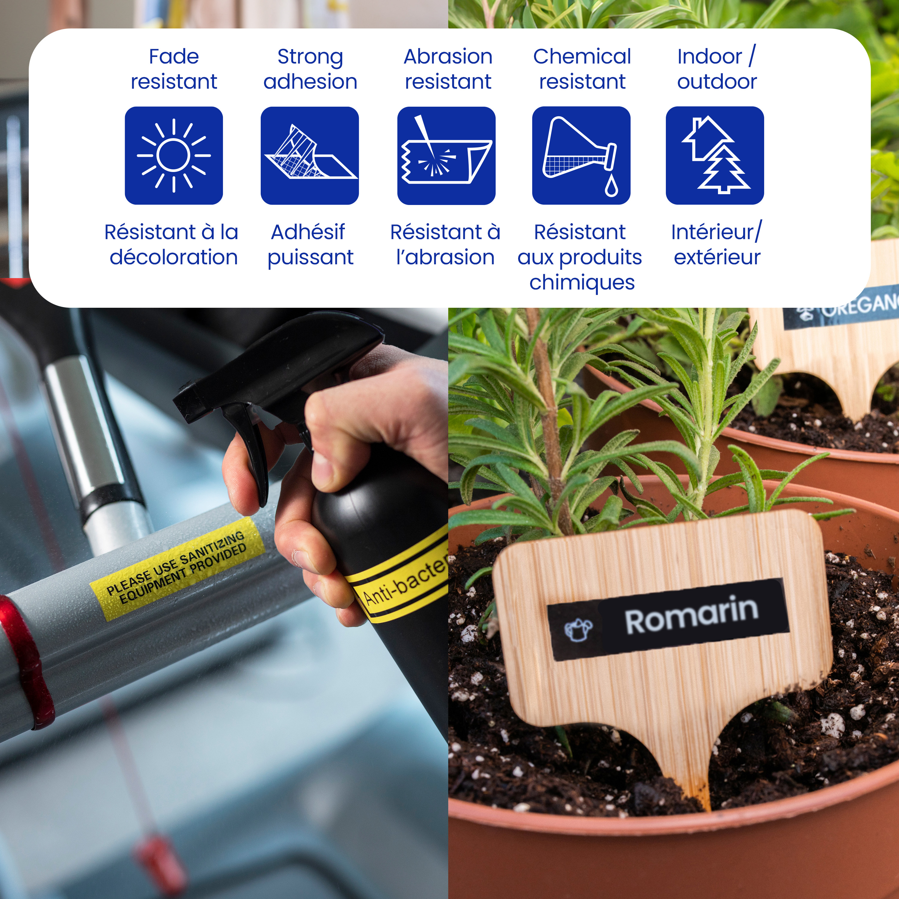 - Étiquettes avec endos fendu facilitant leur application.