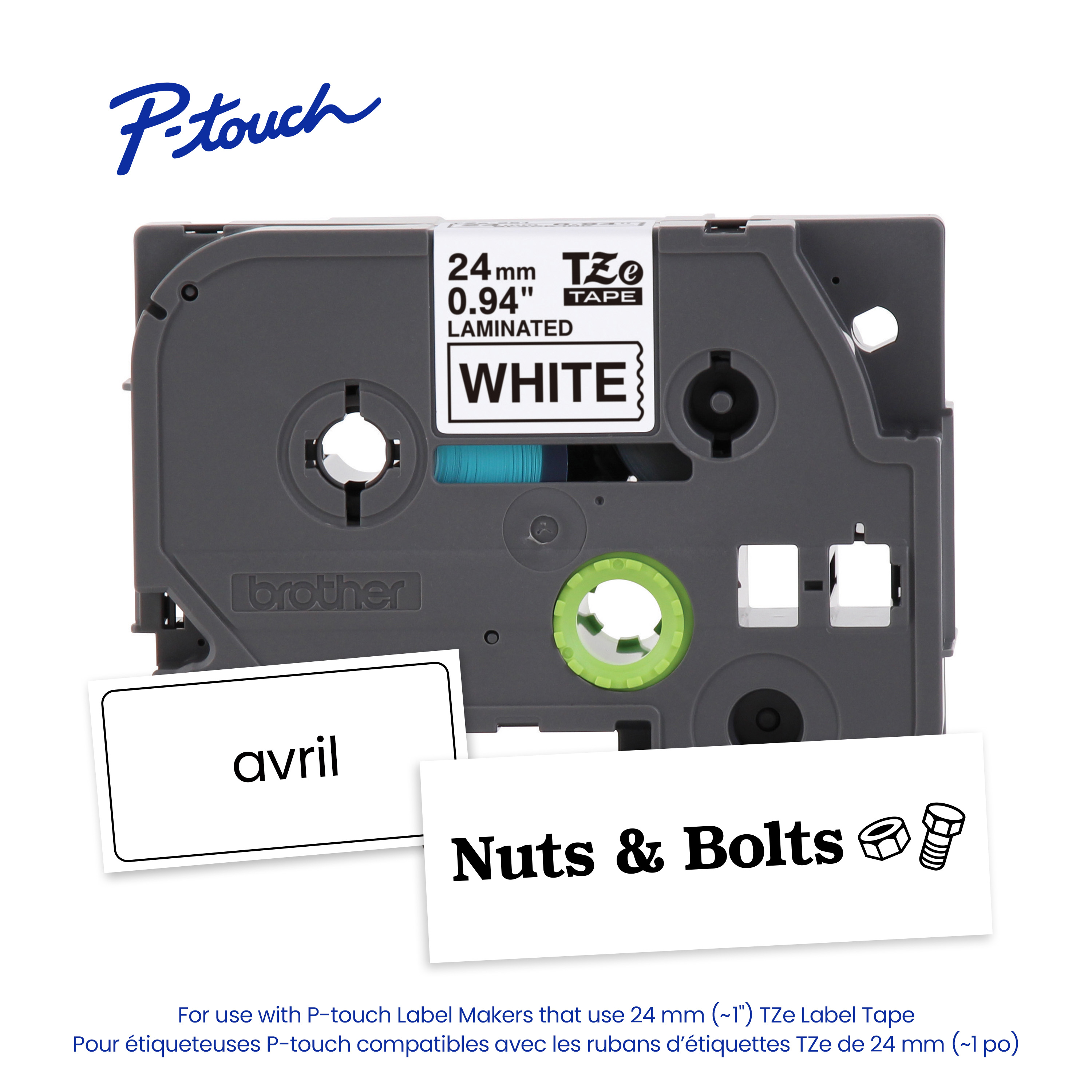 Brother TZe-251G Ruban laminé blanc avec texte noir authentique pour étiqueteuse P-touch, 24 mm (L) x 8 m (l)